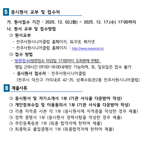 제12호 26년 전주서원시니어클럽 노인일자리 안전전담인력 채용공고