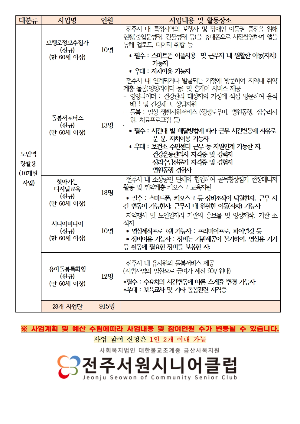 2026년 전주서원시니어클럽 노인역량활용사업 참여자 모집